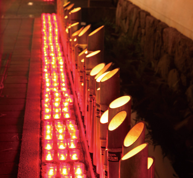 ひこねキャンドルナイトは、今年で6年目を迎えます。今年も、石田三成の茶の井の伝承が残る仙琳寺竹林の竹を使ってキャンドルを灯します。 テーマは「大一大万大吉」(「ONE FOR ALL, ALL FOR ONE」)、そして「鎮魂」……。読経のあと、午後7時に鎮魂の鐘をつきます。 また、キャンドルナイト終了後、今年使用した竹筒を、お一人様1本、お持ち帰りいただけます。時々、お家でキャンドルを灯して、スローな夜をお過ごしください。